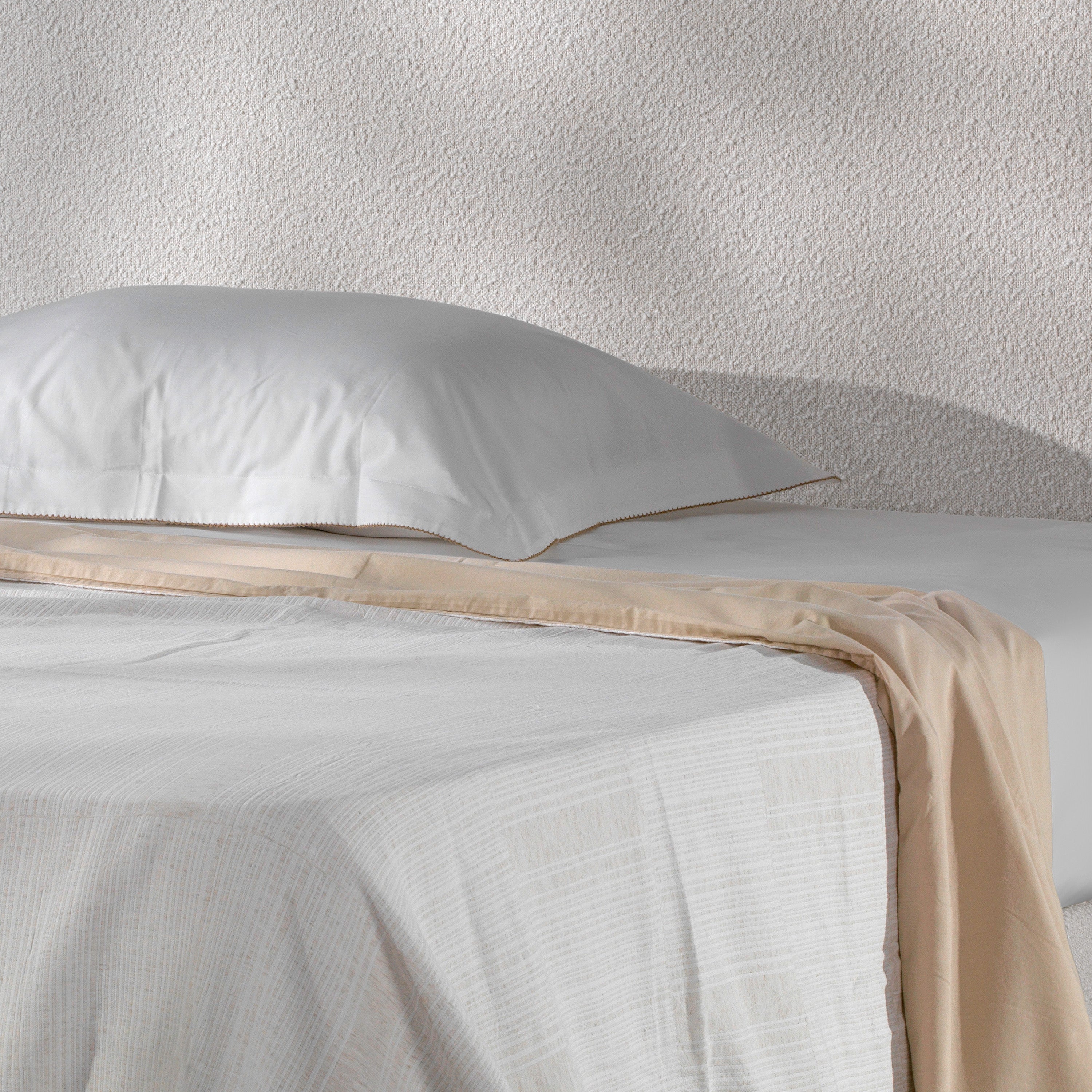 Διακριτικές ρίγες 2mm που προσθέτουν κομψότητα και ισχυρή ξενοδοχειακή εικόνα. Απλότητα με αίσθηση πολυτέλειας — ταιριάζει άψογα σε μοντέρνα δωμάτια.